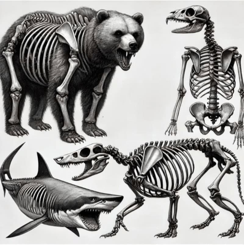 - Compare different skeletons: mammals, reptiles, birds, amphibians, and aquatic creatures.