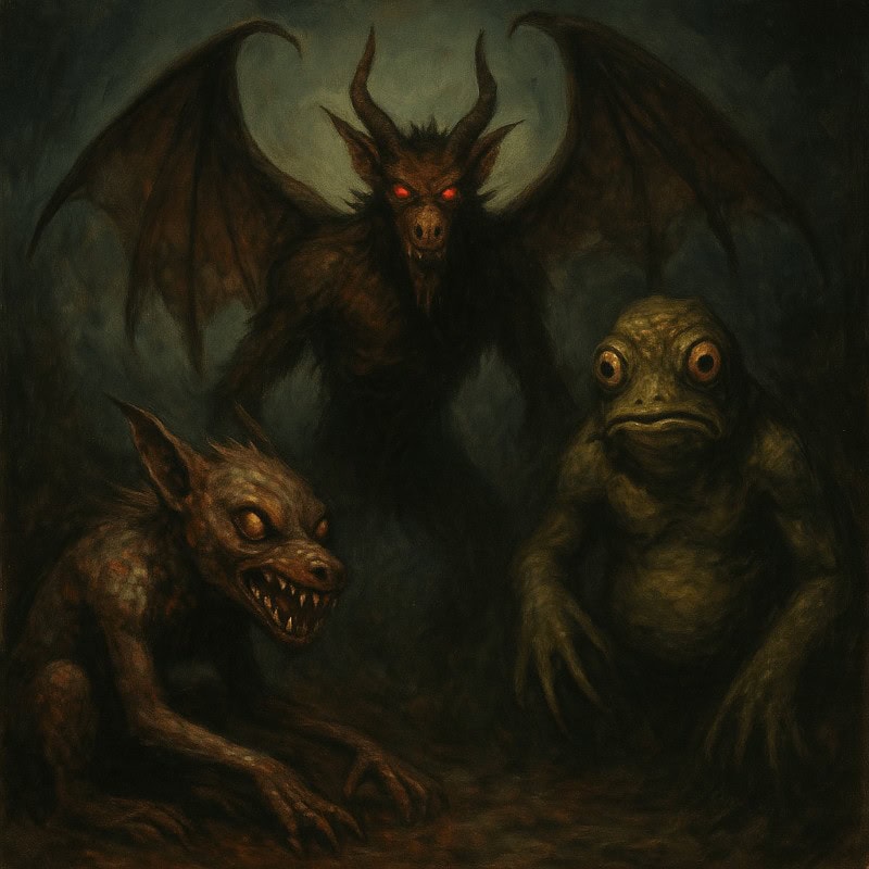 Welcome to the Cryptid Horrors section – a gallery of winged warnings, fangy freeloaders, and swampy spellcasters. Some don’t even wait for your foggy Tuesday to strike. If you’re looking for inspiration for cryptid horror art, you’ve come to the right place.