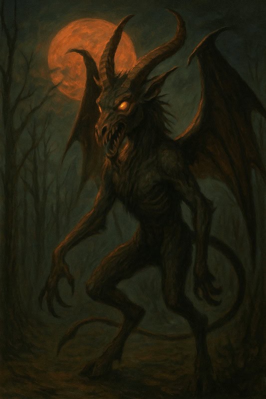 According to the tale, her wish came true. On the stormy night of its birth, the child transformed before her horrified eyes – sprouting leathery wings, clawed hands, a forked tail, and a horse-like head – before letting out an unholy screech and flying up the chimney into the woods.