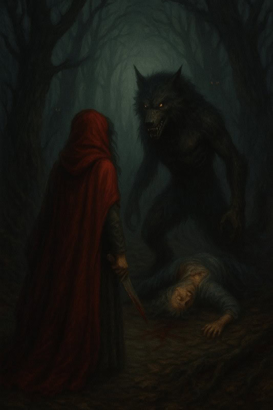 The wolf didn’t just swallow Granny and the girl. In certain tellings, he served Red pieces of her own grandmother’s flesh and poured her blood to drink, turning the meal into a macabre ritual before devouring her whole. The woods were never a simple backdrop, but a shadowy labyrinth of danger and temptation, where every tree could hide a predator and innocence was nothing but a liability.