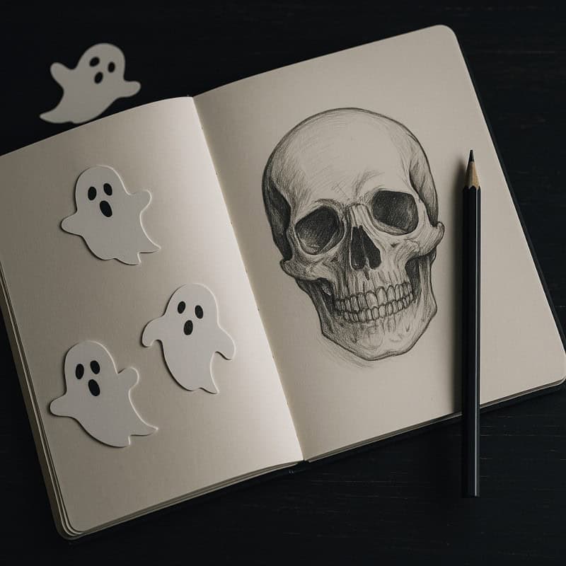 - Sketch a place you know well – then twist it into its haunted counterpart.