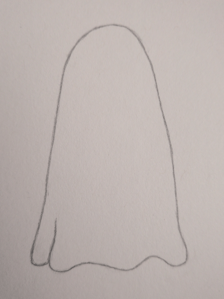 If you’d like, you can also add a subtle extra fold line near the bottom edge of the ghost to suggest fabric movement. Keep it light and let it fade upward so it doesn’t overpower the drawing.