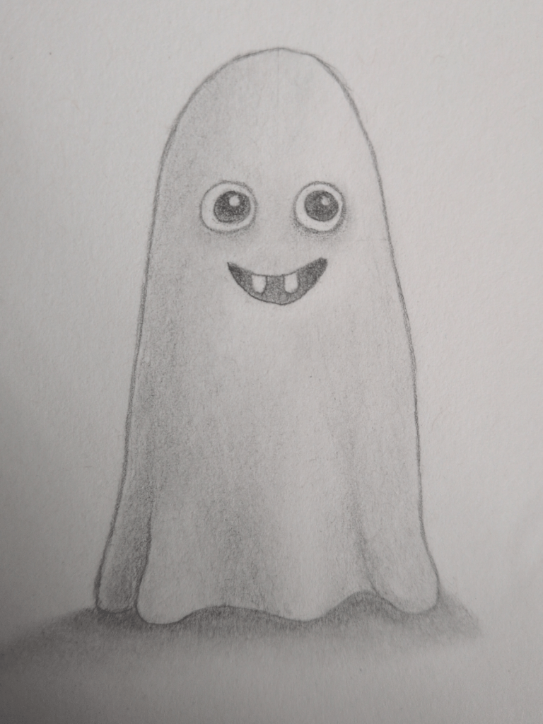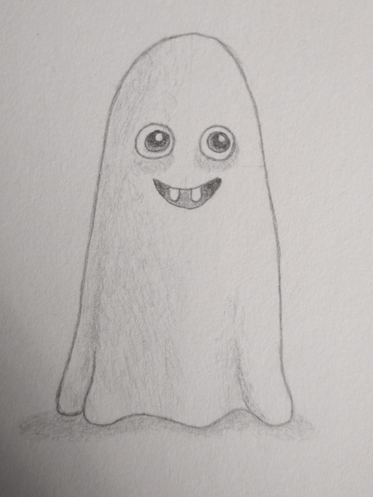 This ghost is designed to be approachable and expressive, with big eyes, a playful grin, and smooth shadows that help it feel rounded and floaty. I’ll focus on keeping everything clear and manageable, so even if you’ve only just started drawing, you can follow along with confidence.