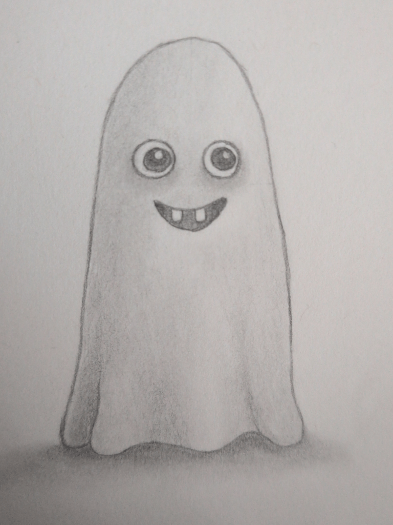Don’t shade the entire ghost evenly. Leave the opposite side lighter. This contrast makes the ghost look rounded instead of flat.