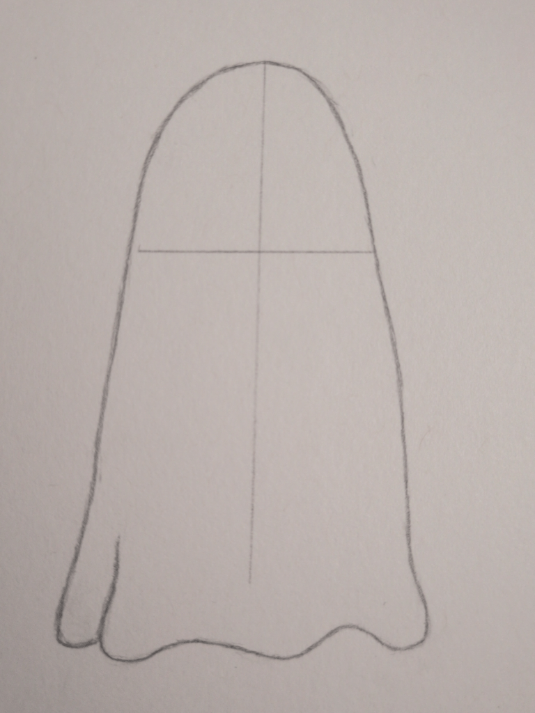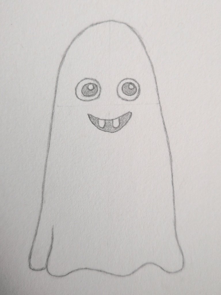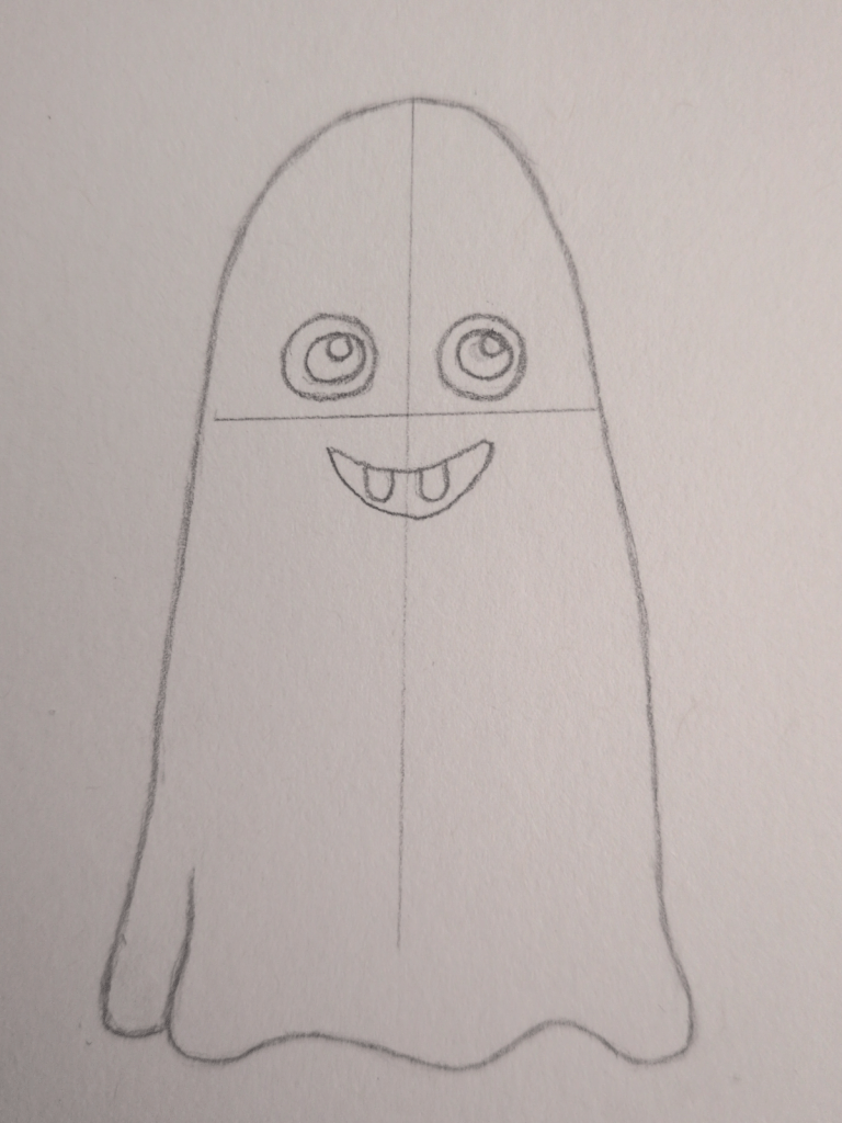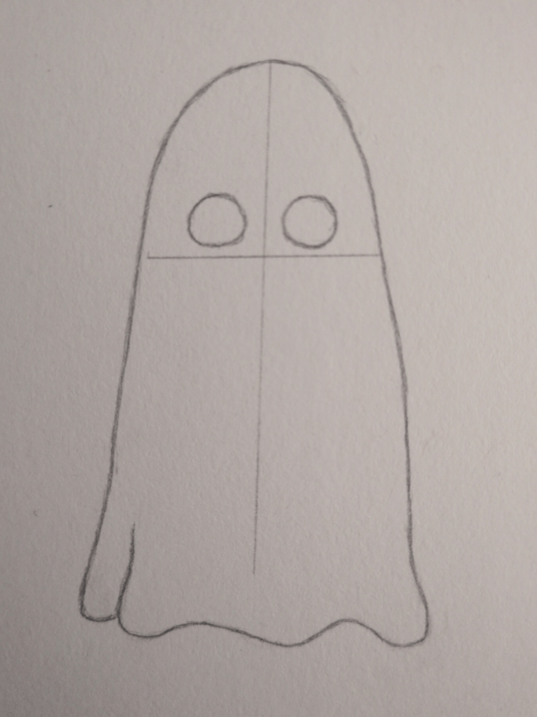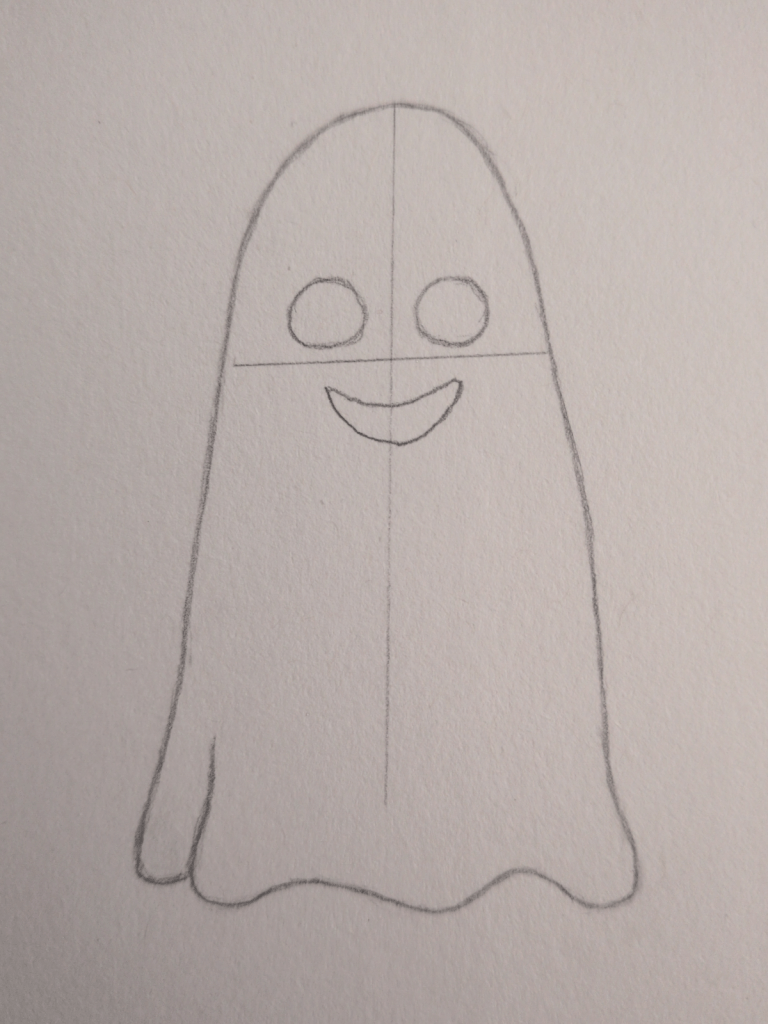Lightly draw a vertical line down the centre of your ghost. This will help you place the eyes and mouth evenly on both sides.