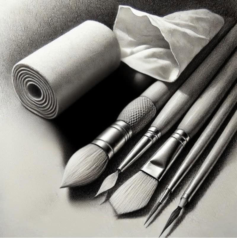 - Tortillions & Blending Stumps: soft, smoky shading without harsh edges