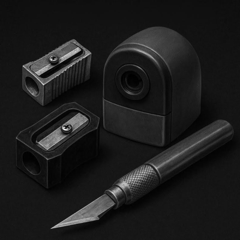 - Craft knives – The old-school method. Slice away the wood to expose a long, tapered point for shading or detailing. Perfect for control freaks… just don’t slip and add real blood effects.