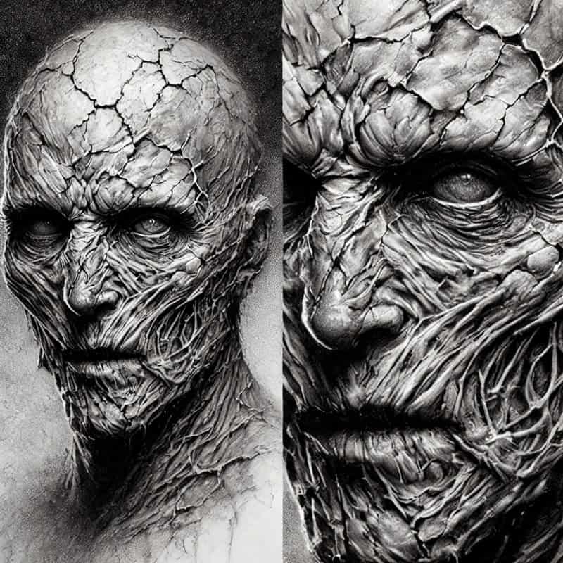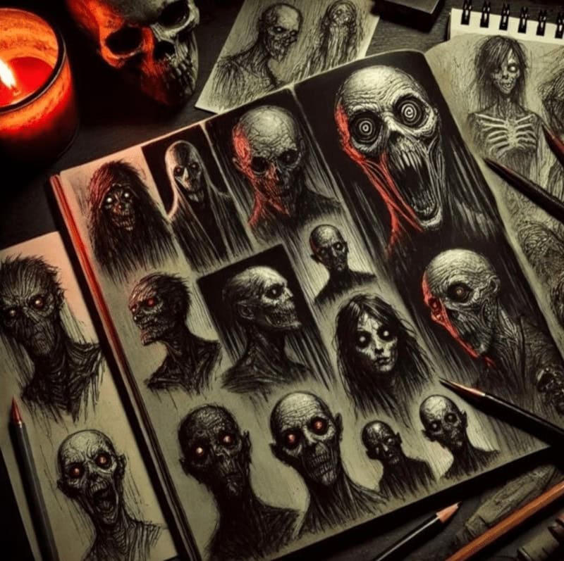 Horror art isn’t just about looking scary – it’s about evoking fear, unease, or that indescribable sense of wrongness that makes people uncomfortable. It’s about crafting designs that feel alive (even if they’re undead) and telling a story through their appearance.