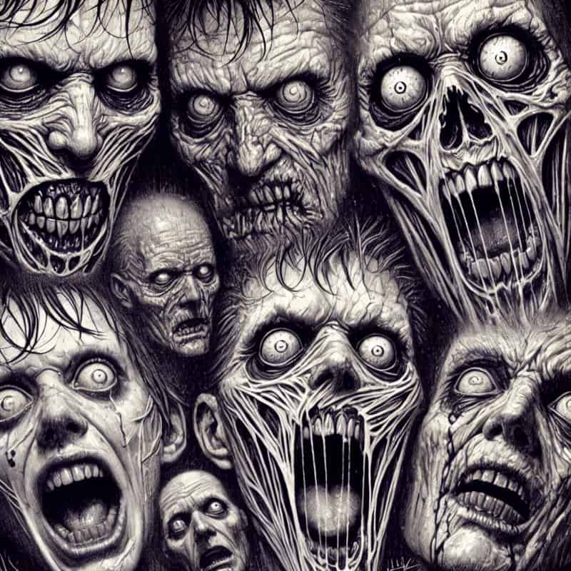 Evoke fear, insanity, or lifeless dread through facial details.