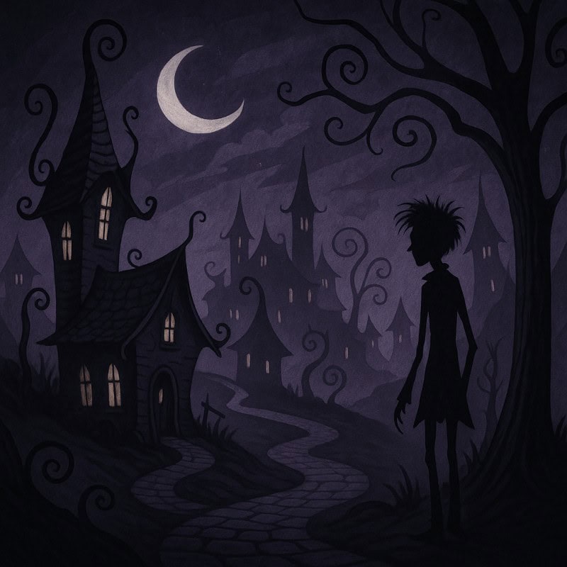 Tim Burton proves that creepy doesn’t always have to be serious. His world is filled with twisted rooftops, spindly characters, and a playful take on the macabre. It’s gothic… but with a grin.