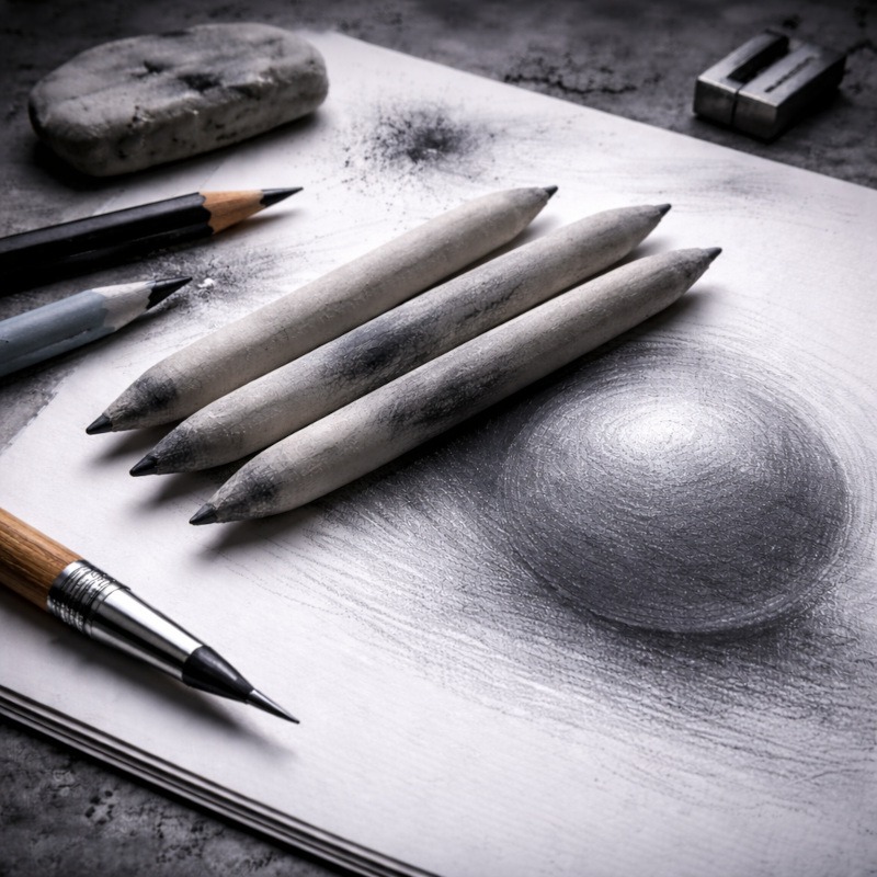 Blending stumps collect graphite quickly, and a dirty stump can unintentionally darken areas you meant to keep light.