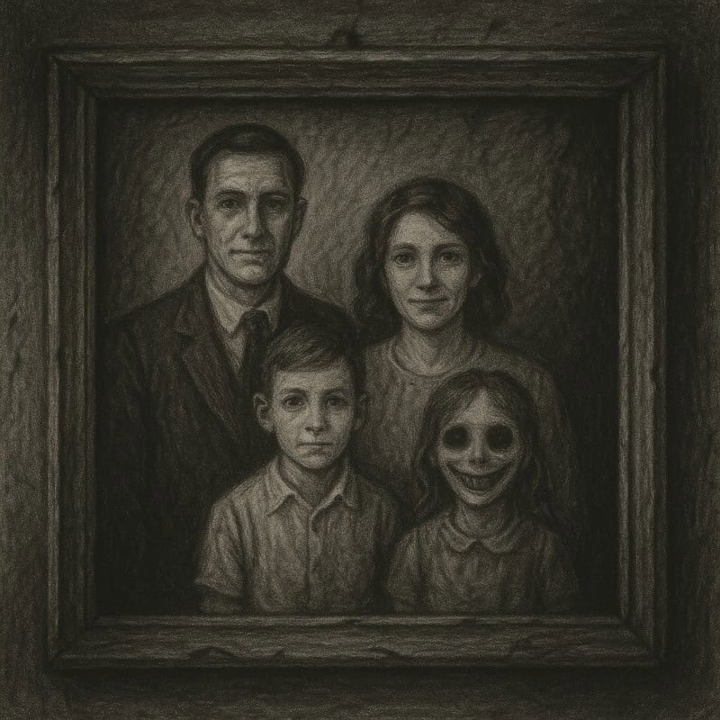 Take a cheerful, everyday moment – like a picnic or a family photo – and add just one or two slightly wrong elements. Maybe everyone in the photo is smiling except one figure staring at the viewer. Or maybe the picnic basket contains a shadowy shape instead of sandwiches. - Focus on expression and body language.