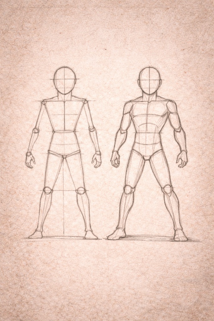 These are not anatomy lessons. They’re just there to help you understand direction and balance before adding shapes. Think of them as scaffolding, not a full skeleton.
