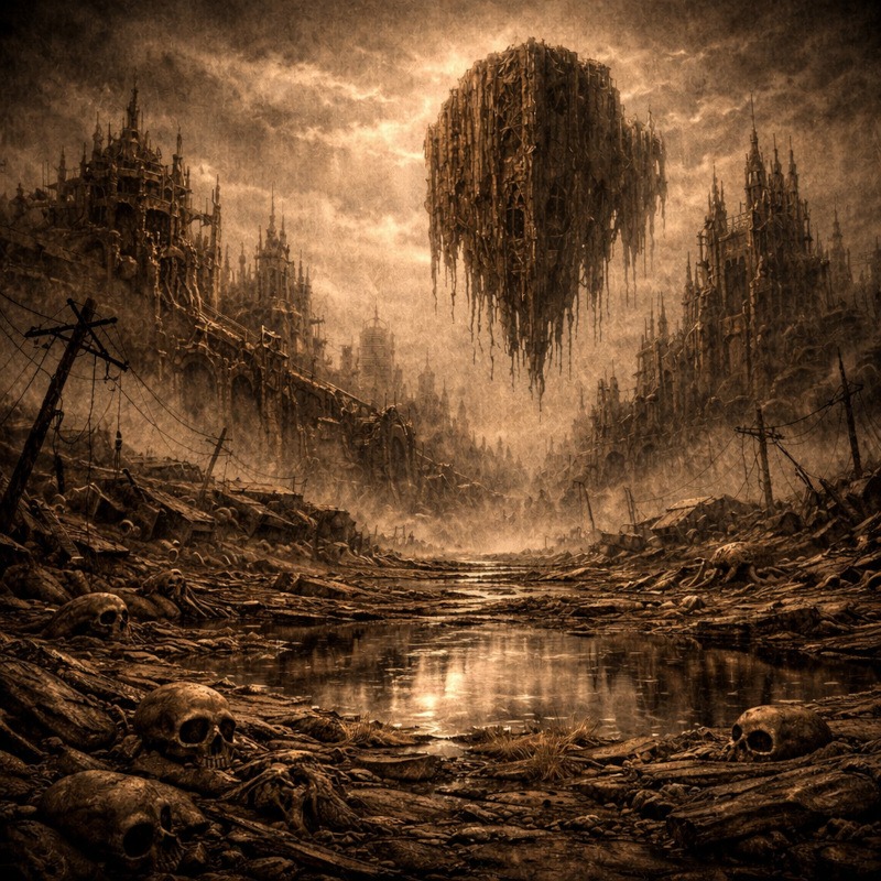 While some horror artists design creatures, Beksiński painted entire realities where something clearly went wrong. His work feels like a dream you cannot fully explain, except the dream involves decaying landscapes, towering skeletal forms and an unsettling amount of silence.